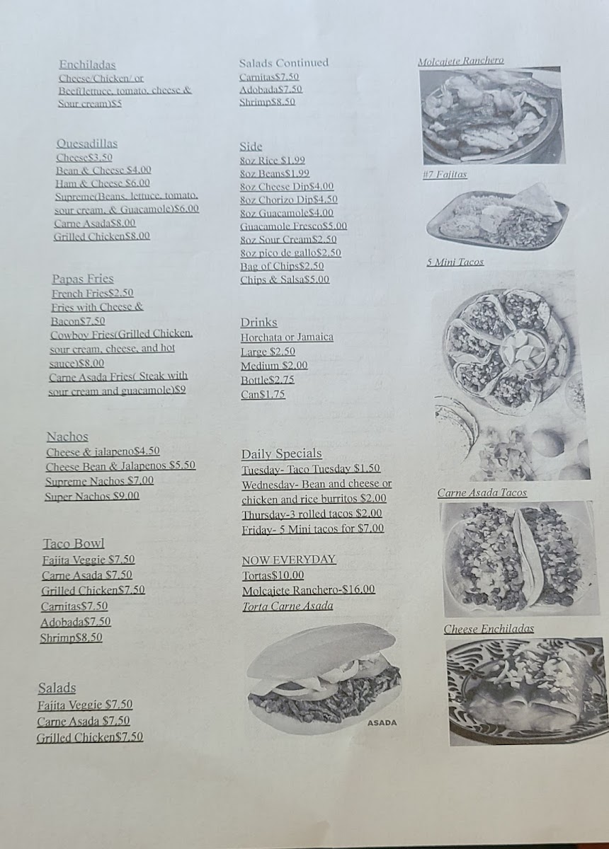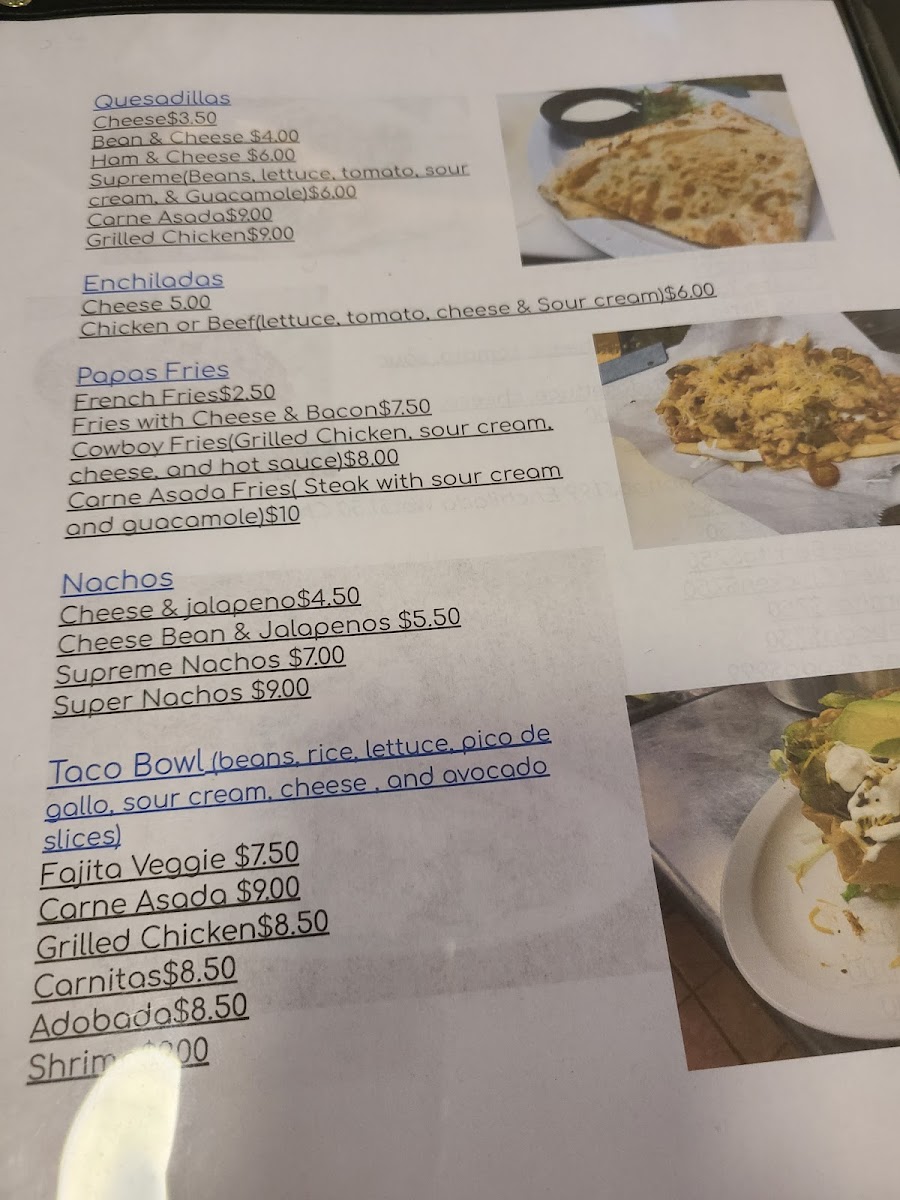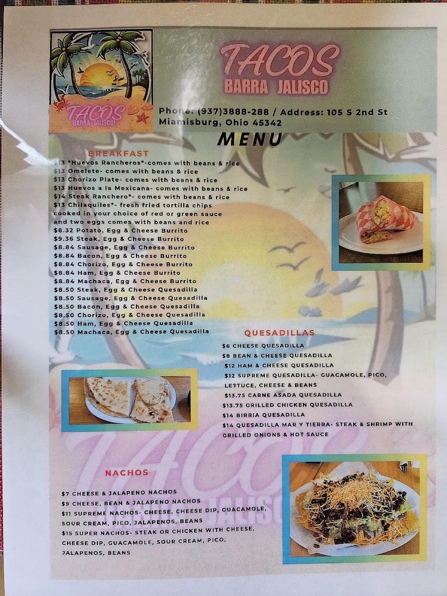 From a reviewer’s perspective, the menu at Tacos Barra Jalisco delivers a well-rounded snapshot of classic Mexican comfort food, balancing hearty breakfasts with satisfying all-day favorites. The morning selection stands out with traditional plates like Huevos Rancheros, Omelete, Steak Ranchero, and Chorizo Plate, complemented by portable options such as Potato Egg & Cheese Burrito, Steak Egg & Cheese Burrito, Sausage Egg & Cheese Burrito, Bacon Egg & Cheese Burrito, and Chorizo Egg & Cheese Burrito. Breakfast lovers can also enjoy grilled, cheesy bites like Steak Egg & Cheese Quesadilla, Sausage Egg & Cheese Quesadilla, Bacon Egg & Cheese Quesadilla, Chorizo Egg & Cheese Quesadilla, and Ham Egg & Cheese Quesadilla, which round out the morning offerings nicely.